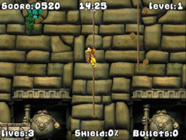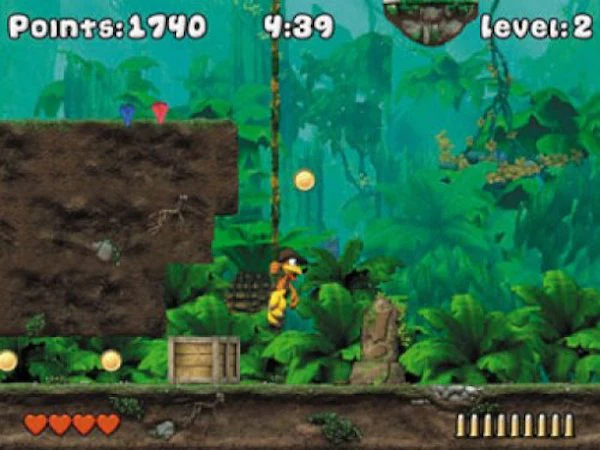 Versteckte Fallen, schlecht gelaunte Gorillas, angriffslustige Krokodile, komische Schamanen, Waldgeister, Tempelwächter, Fledermäuse, Totenkrieger und gestrandete Aliens verlangen den ganzen Mut und die Geschicklichkeit eines echten Schatzjägers.