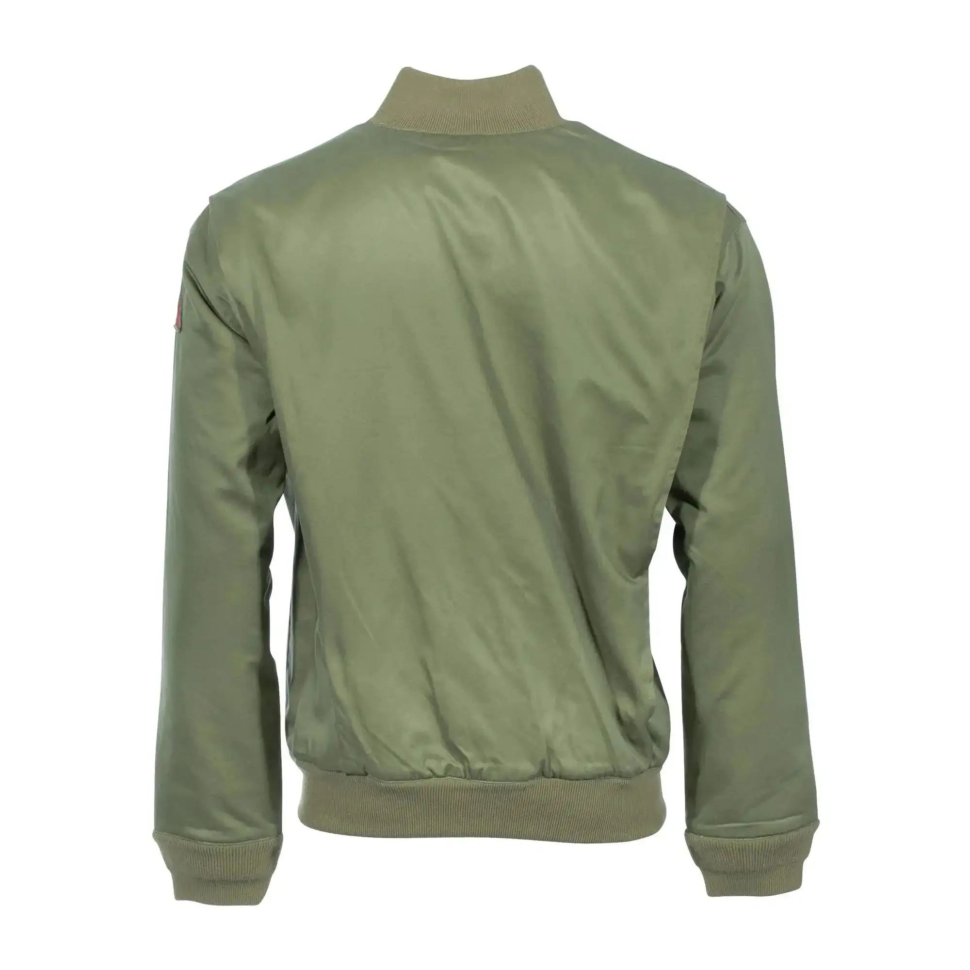 Ursprünglich als Winterfeldjacke mit schwerem Baumwollgewebe gedacht. Wärmt dank extra dickem Futter. Mit aufgenähtem Abzeichen auf der linken Schulter.
